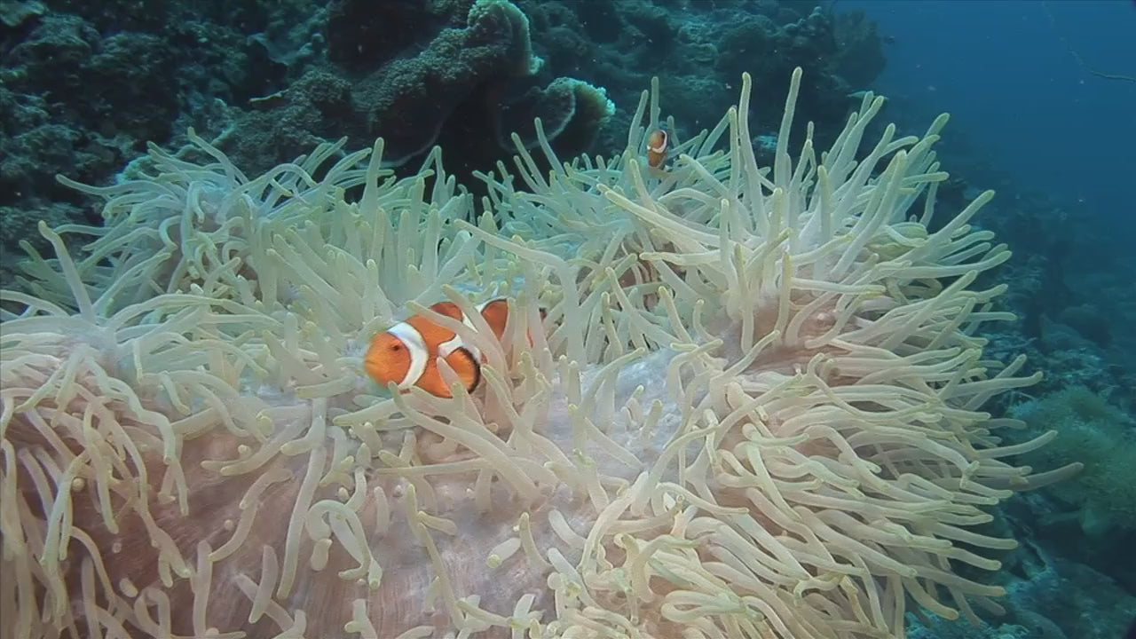 🎬 Clown Fish Movie (16:21) – Discover a variety of clown fish in bright orange, pink, red, and even black, darting playfully through waving anemones and colorful corals.