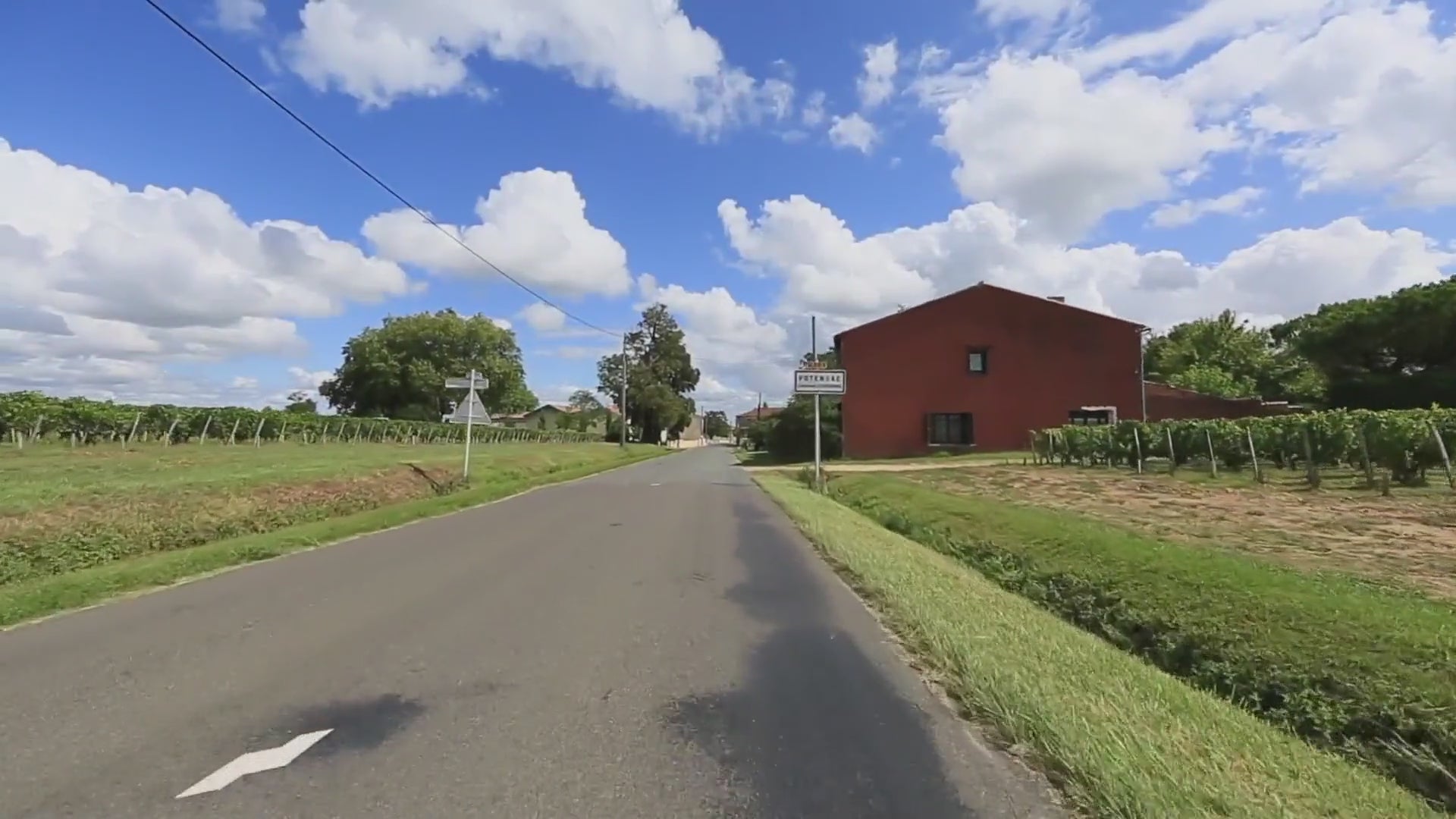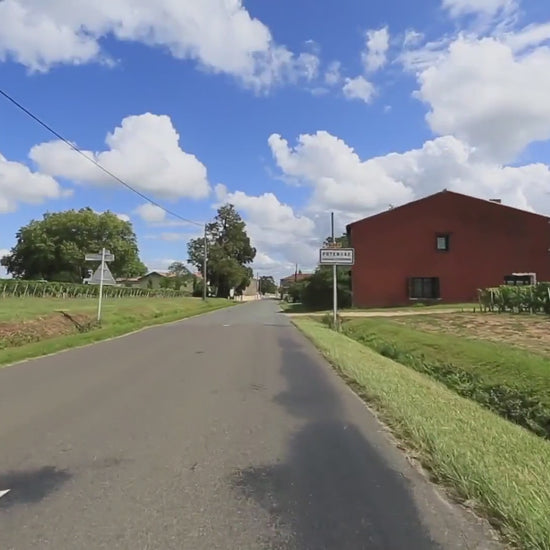 Fast pace bike ride over flat paved roads through the beautiful wineries of Medoc France. Under the clear blue sky you have stunning view over the flat landscapes with vineyards as far as you can see and beautiful large deep green trees in the backdrop.